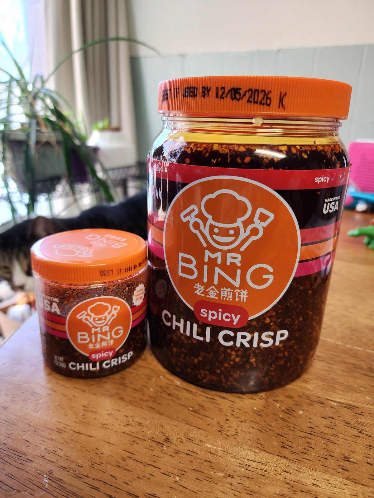 My husband eats this chili crisp on everything. The 64 oz jar saves us almost 50% over the same quantity of those small jars in the supermarket. Also like ordering directly rather than Amazon.